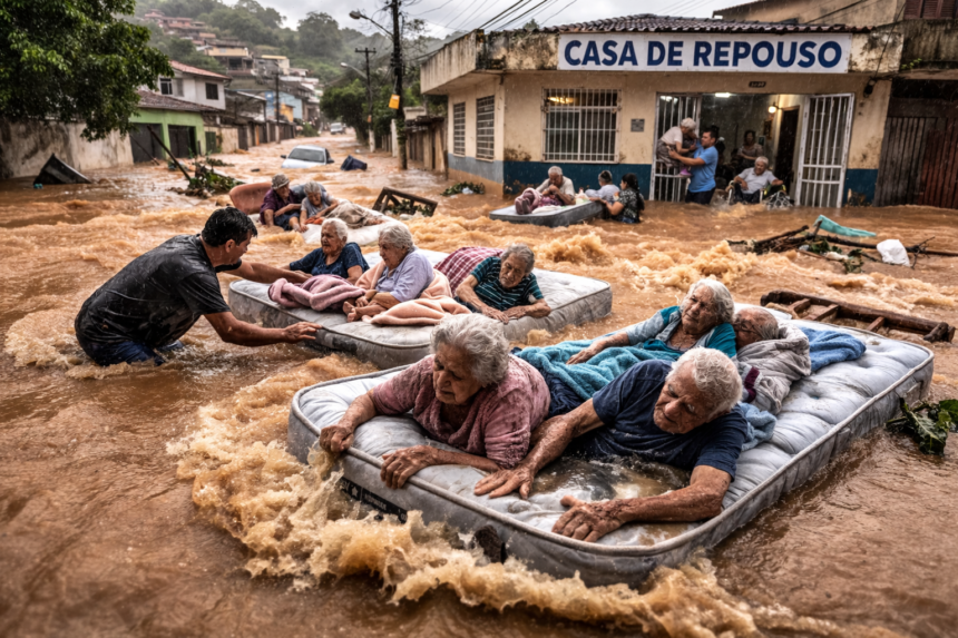 Drama e Esperança: Idosos em Colchões Boiam Durante Enchente em Casa de Repouso em Ubá