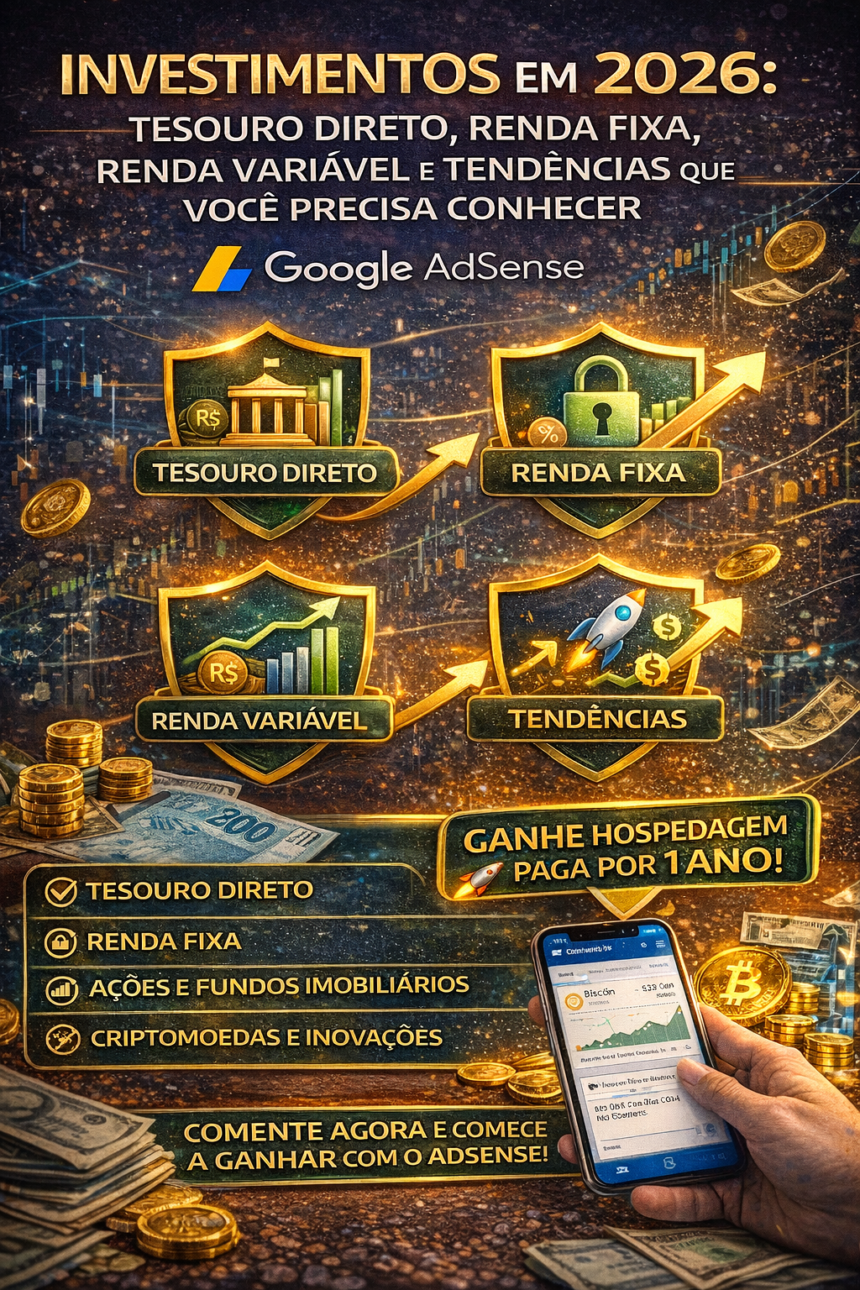 Investimentos em 2026: Tesouro Direto, Renda Fixa, Renda Variável e Tendências que você precisa conhecer